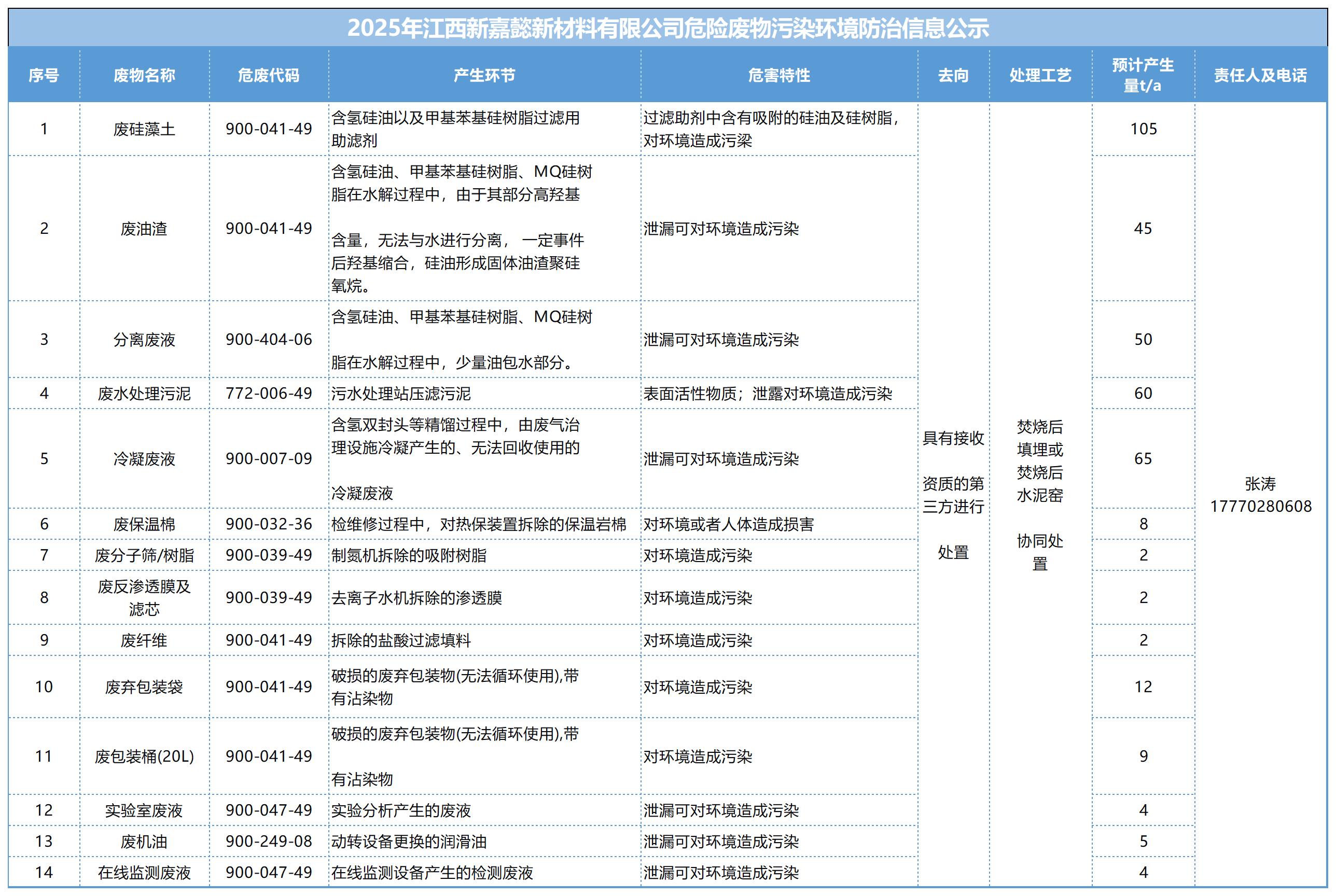 2025年江西新嘉懿新材料有限公司危險廢物污染環境防治信息公示